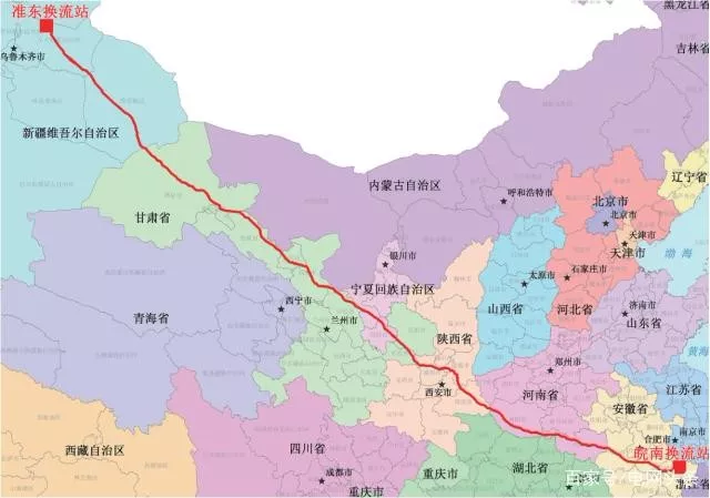 準(zhǔn)東-皖南±1100千伏特高壓直流輸電工程起于新疆昌吉州昌吉換流站,止于安徽宣城市古泉換流站,途經(jīng)新疆、甘肅、寧夏、陜西、河南、安徽六個(gè)省區(qū),送電距離3324公里,輸送容量1200萬(wàn)千瓦,每年可向華東用電負(fù)荷中心輸送600-850億度電能,將有效緩解華東地區(qū)中長(zhǎng)期電力供需矛盾,促進(jìn)西部、北部能源基地開(kāi)發(fā)與外送。