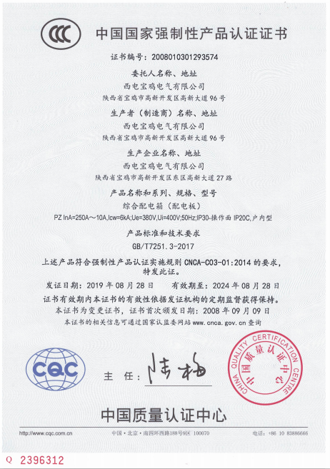 經(jīng)過前期資料準(zhǔn)備、網(wǎng)上申請、樣機(jī)制作、型式試驗、產(chǎn)品認(rèn)證等多個環(huán)節(jié),近期,西電寶雞電氣取得了PZ綜合配電箱新的產(chǎn)品型式試驗報告和3C認(rèn)證證書,順利完成了新版標(biāo)準(zhǔn)的換版工作,將助力公司低壓柜產(chǎn)品的銷售。