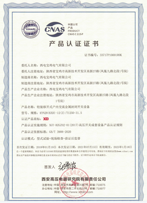 經(jīng)過前期現(xiàn)場審核、不符合項的糾正、糾正資料提交、書面不符合項糾正驗證、認(rèn)證公司的審查、批準(zhǔn)、制證等多個環(huán)節(jié),近日,西電寶雞電氣KYN28(KXD)-12(Z)/T1250-31.5鎧裝移開式戶內(nèi)交流金屬封閉開關(guān)設(shè)備取得了新版標(biāo)準(zhǔn)GB/T3906-2020產(chǎn)品認(rèn)證證書,至此公司順利通過了西高院自愿性產(chǎn)品認(rèn)證年度監(jiān)督審核和KYN28(KXD)-12(Z)/T1250-31.5開關(guān)柜標(biāo)準(zhǔn)換版認(rèn)證工作,為公司產(chǎn)品的銷售、市場開拓提供有力支持。