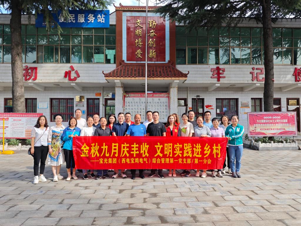 為深入學(xué)習(xí)貫徹落實(shí)習(xí)近平新時(shí)代中國(guó)特色社會(huì)主義思想和黨的二十大精神,不斷開創(chuàng)公司精神文明建設(shè)新局面,為企業(yè)高質(zhì)量發(fā)展提供強(qiáng)大精神動(dòng)力和豐潤(rùn)道德滋養(yǎng),9月7日(周六)寶光集團(tuán)(西電寶雞電氣)綜合管理第一黨支部、綜合管理第一分會(huì),前往西電寶雞電氣新時(shí)代文明實(shí)踐站——磻溪鎮(zhèn)張家塬村開展“金秋九月慶豐收  文明實(shí)踐進(jìn)鄉(xiāng)村”結(jié)對(duì)共建活動(dòng)。