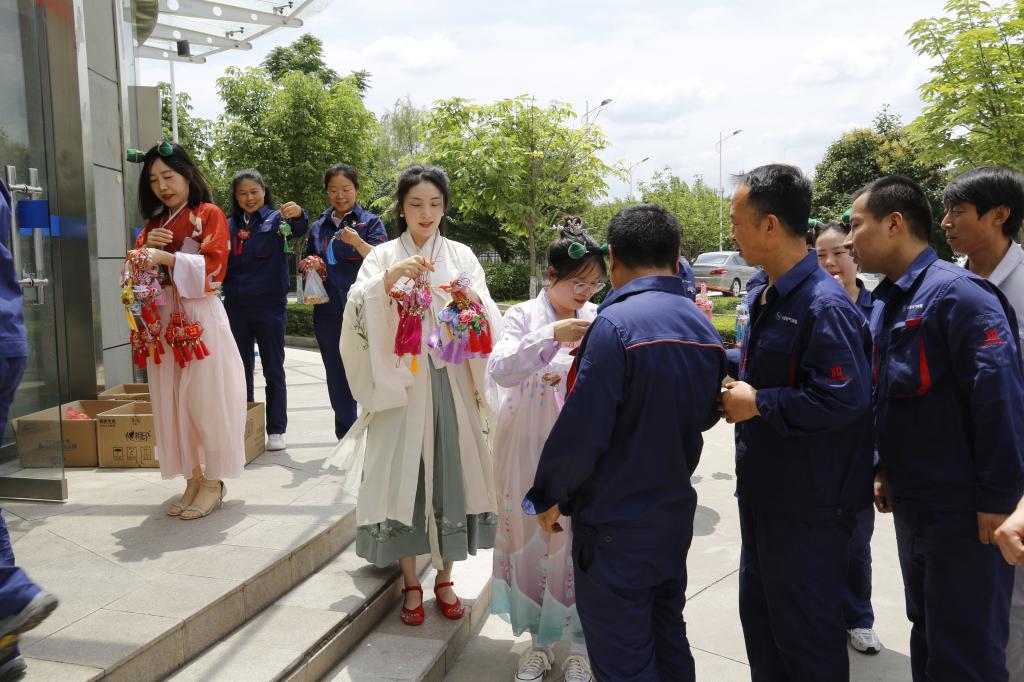 活動(dòng)現(xiàn)場(chǎng),別具一格的穿漢服發(fā)香包活動(dòng)正在如火如荼地進(jìn)行著。志愿者們身著華美的漢服,仿佛是穿越時(shí)空而來(lái)的古人,為職工們送上香包送去祝福和安康。漢服與香包的結(jié)合,不僅讓職工感受到了傳統(tǒng)文化的魅力,也讓人們?cè)诿β档墓ぷ髦姓业搅艘环輰庫(kù)o和美好。
