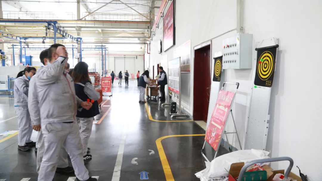 “快樂跳跳”游戲,一組五人按照指令跳到指定區(qū)域,職工們紛紛使出渾身解數(shù)完成規(guī)定的游戲目標(biāo),隨著指令越來越快,大家伙著急的動(dòng)作讓在場(chǎng)的觀眾忍俊不禁。
